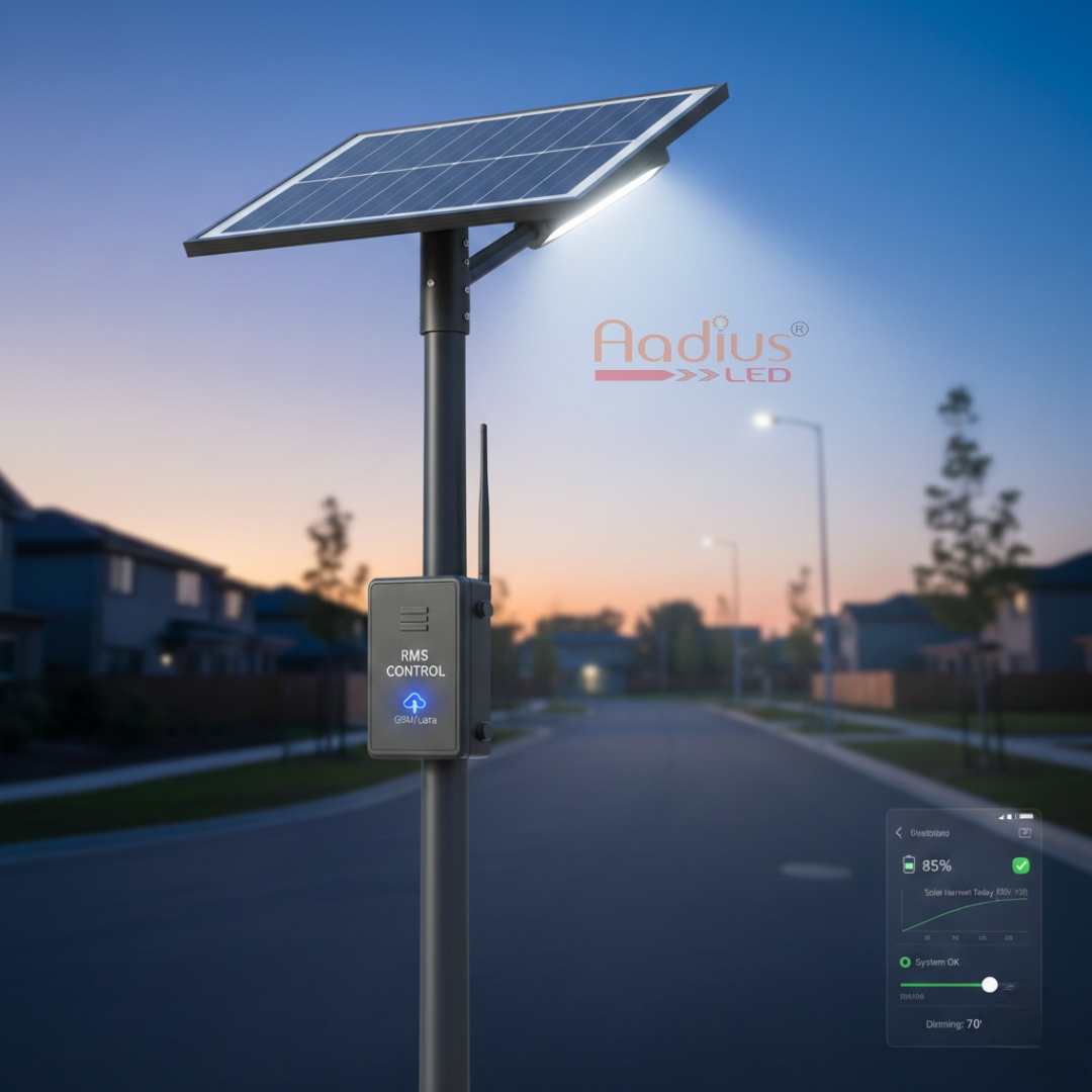 Unlike standard solar lights that operate independently, an RMS-based system is connected to a network (usually via GSM, GPRS, or LoRa) that allows you to monitor and control the light from a central dashboard or mobile app.